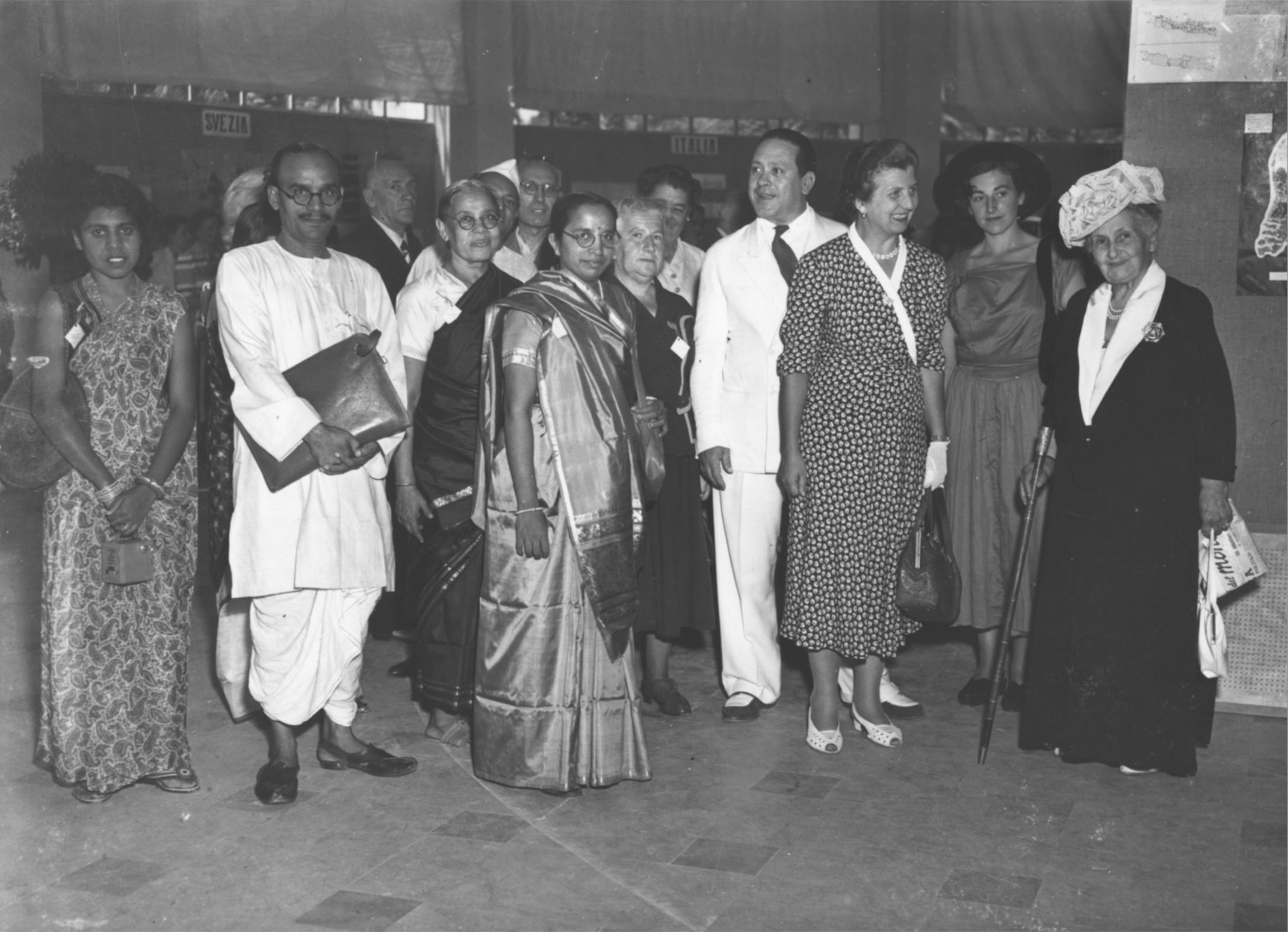 [Maria Montessori, alla sua sinistra la nipote Marilena M. Montessori e a seguire l’on. Maria de Unterrichter Jervolino, presidente dell’Opera Nazionale Montessori, e Mario M. Montessori, Congresso Internazionale Montessori sul tema La formazione dell’uomo nella ricostruzione mondiale, San Remo 22-29 agosto 1949] – Archivio ONM.