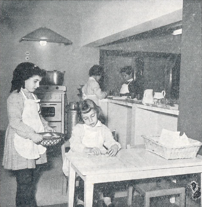 Preparazione del rinfresco all’inaugurazione della “Casa dei Bambini” al Tuscolano [5 gennaio 1957, Roma] – Il cinquantenario della creazione della prima “Casa dei Bambini”, in “Vita dell’infanzia”, a.VI, n.1, 31 gennaio 1957, p. 3.