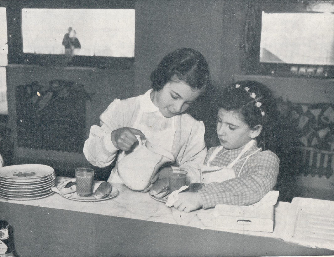 Si serve il rinfresco il giorno dell’inaugurazione della nuova “Casa dei Bambini” Casa dei Bambini di Viale Spartaco (quartiere Tuscolano), 5 gennaio 1957, Roma] – S. Valitutti, La “Casa dei Bambini” e il Metodo Montessori, in “Vita dell’infanzia”, a.VI, n.1, 31 gennaio 1957, p. 8.